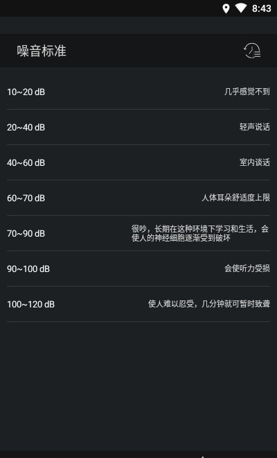 能随时在线查看周围的噪声分贝,了解噪音的各种危害,查看周围声音的各种参数。