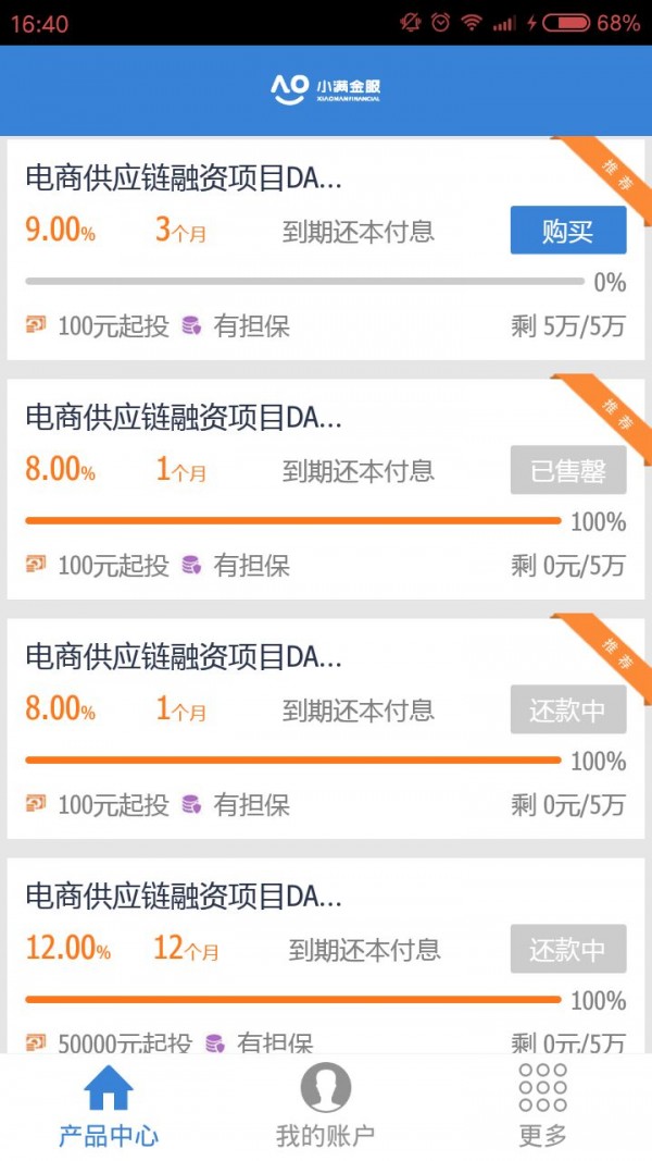 小满金服app是一款手机理财众筹投资软件,提供多种理财产品,满足用户全方位金融需求,随时随地便捷理财,更有海量红包等你来领。投资和众筹的手机平台 理财众筹投资满足你所有的金融需要。与环迅支付强强合作,第三方托管保证您的资金安全 投资回款实时更新,也可以邀请好友更有海量红包送上,助你投资,平台新闻,相关协议及时浏览,没有交易死角,小满金服将成为您的掌上理财好帮手。