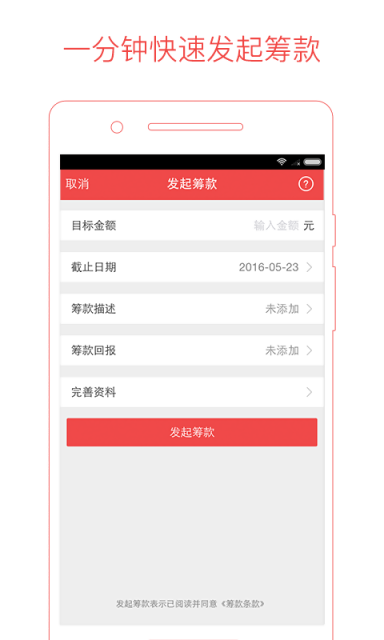 【发起筹款】可以添加文字和图片描述筹款详情,录制一小段语音更详细的说明,还可以给支持者设置回报让别人更容易支持;