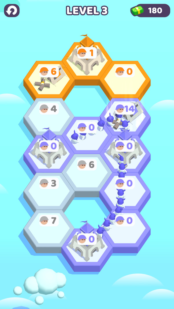 3、占领更多的六边形的格子来尝试,闯关需要具备一定的策略技能展示