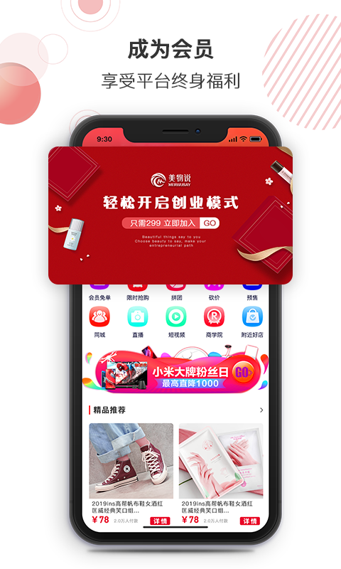 美物说app是一款全新的社交娱乐购物软件,集直播、短视频、社交、购物服务为一身,用户不仅可以在这里发现有趣的和人,同时还能观看直播,发现更多超高性价比的商品,发现潮流流行趋势,让购物也能与时俱进;你可以成为会员用户,这样就可以享受终身会员专属福利,各种减价、会员价以及优惠券都能享不停;快来下载体验吧。