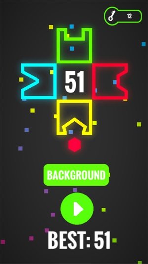 1、在游戏过程中,这些形状出现在屏幕底部并朝着正方形的方向移动合并。
