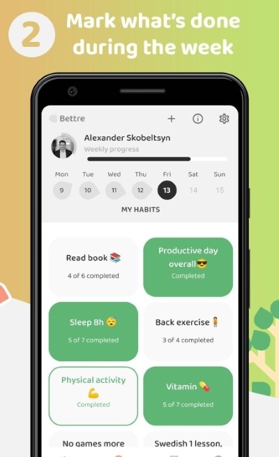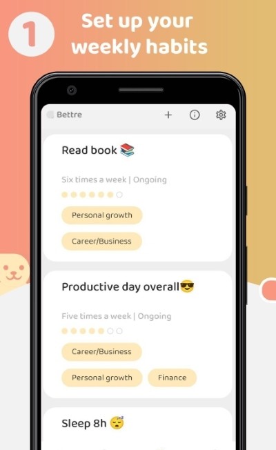Bettre习惯养成 app是一款习惯养成的软件,在这里每天都可以给自己的生活定一个小目标,可以给自己的人生制定一个更好的规划,向自己更好的方向去努力,能够帮助用户养成在生活当中的习惯,通过习惯的养成让你自己变得更加的优秀,以更为健康的生活方式来进行生活,如果你需要进行习惯上面的养成的话,相信Bettre习惯养成app能够在一定程度上面满足你,快来下载体验吧。