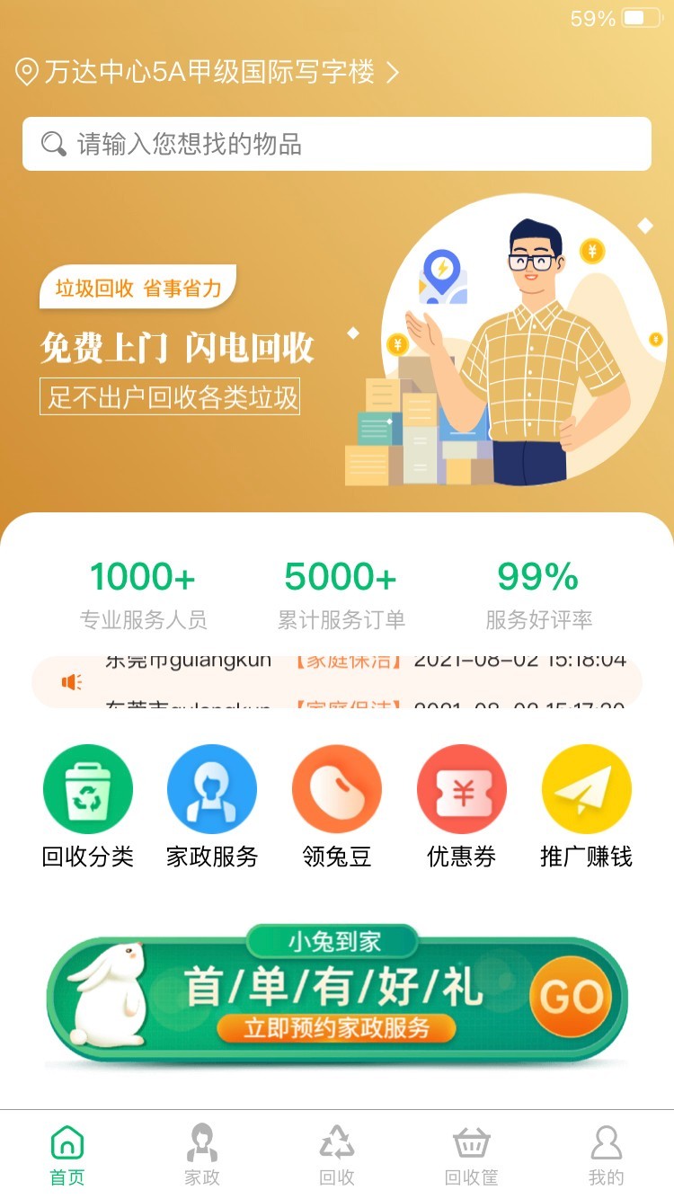 小兔到家app给广大亲们带来了一个很全面的家政软件,如果需要寻找相关的家政服务的话,可以直接来这里搜索对应的服务哦,不管是保洁还是保姆,这里都可以找到,而且都是经过专业培训的哦。APP还有闪电回收服务,帮助用户进行智能垃圾分类,还有各种优惠券可以领取抵扣。快来下载体验吧。