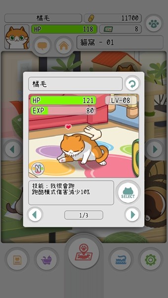 玩家可在猫窝中,选择不同的猫角色来进行游戏