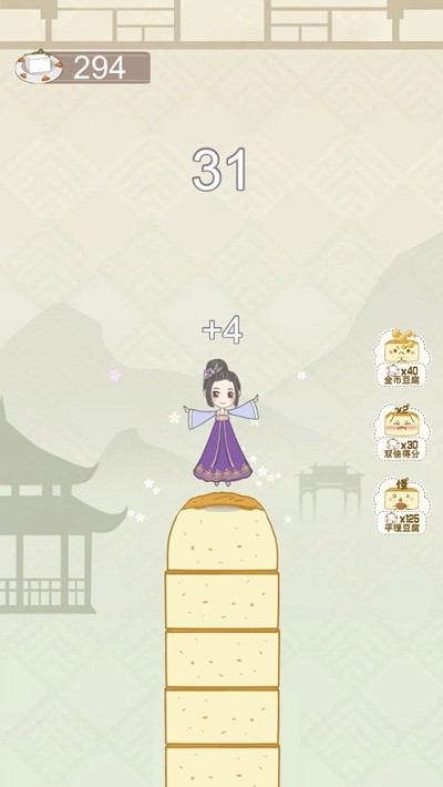 2、测试反应力的叠叠乐游戏,在跳跃的瞬间,豆腐的数量越来越多。