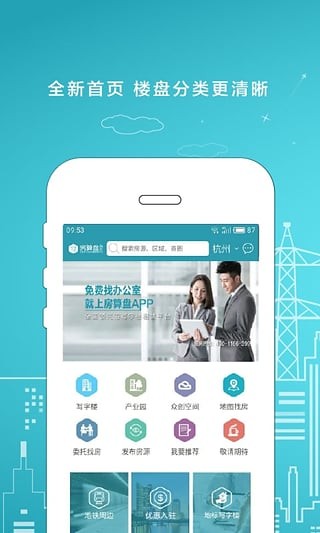 房算盘办公app是一款效率办公应用,是杭州房尚网络科技有限公司专为房产行业群众打造的移动办公ϵͳ。在这里用户可便捷的推广房源、发布房源和在线出售房源等。一款办公室租赁服务平台,帮助用户选上好房源,全程零佣金,高效省事,房算盘是全国领先的写字楼租售平台,我们为您提供写字楼租赁及后续房的配套服务!快来试试吧!