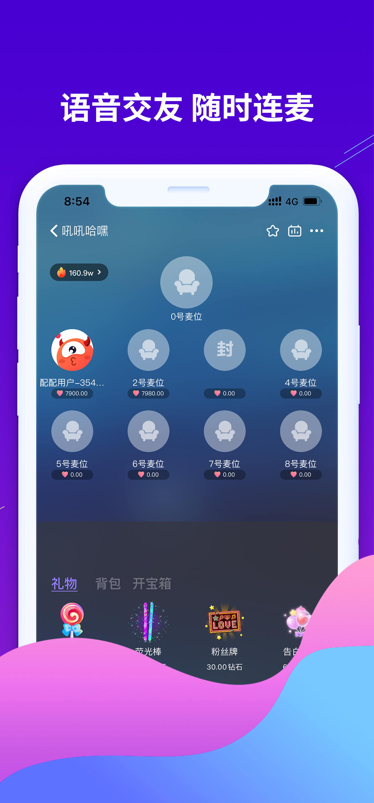 2、上麦和好友实时语音互动,结识更加有趣的朋友,展示自己的才艺和魅力;