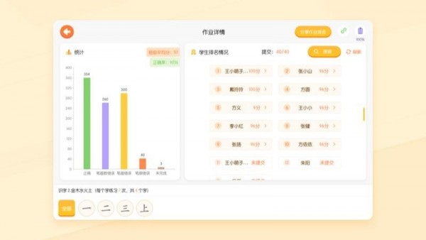 2、练字结束,即时打分评价与纠错,写字效果一目了然,一笔一划,练字有章法;
