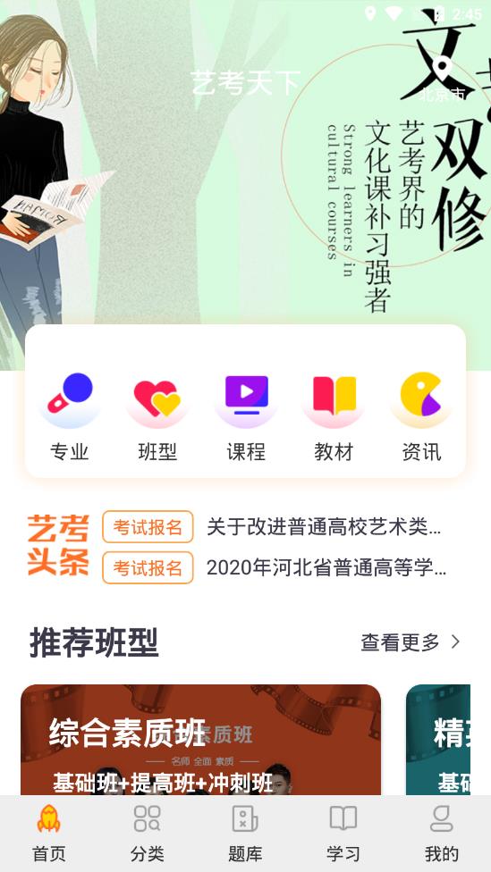 3、上面的艺考课程多种多样,有综合素质班,精英集训班,经典速成班等。