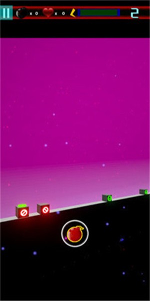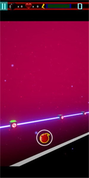 1、在游戏的开始时候会有白色圆盘跟随玩家,玩家们必须操控圆盘前进,避开障碍物;