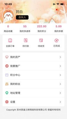 我的:点击查看积分、余额、商品收藏,可提现推广收益;