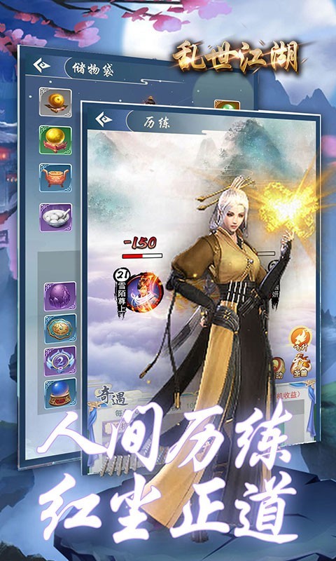 乱世江湖是一款角色扮演类游戏,开始你的作战升级,合成各种充值碎片,逐步的升级自己的角色,大量的元宝银币都可以得到,召唤各种宠物,尽情的战斗升级,速度提高自己的战斗能力,参与各种副本尽情的战斗升级,打造最强的角色进行江湖之战.最新版的乱世江湖加强了美术特效,优化了游戏流畅度,优化了游戏的响应速度,快来下载体验吧。