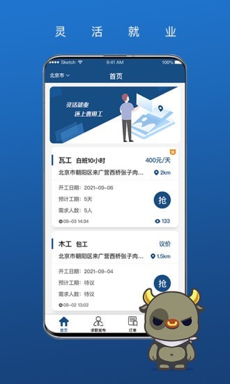 我可直聘平台基于移动端精准的定位和网络数据,为用户实时推送灵活就业信息及建筑工程信息,匹配和跨区域与政府协同监管两大优势,打造灵活就业服务新生态。
