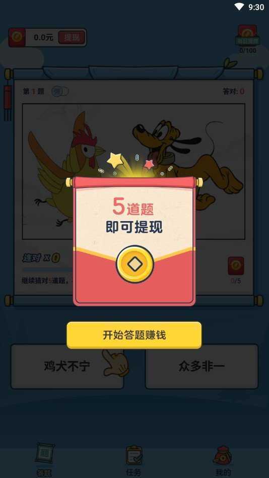 3.下载游戏后就能直接开始答题,每答一题弹出红包可忽略,直接下一题,