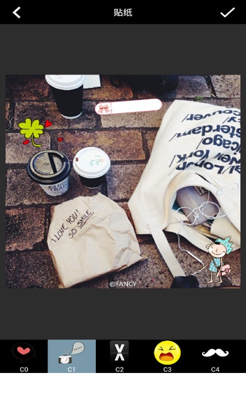 2、选择贴图并放置到图片中,能够展示出您的心情;