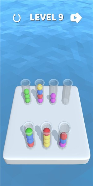 要想所有不同形状不同颜色的小球放置在一个试管中才能顺利过关,小心谨值的开始排序吧;