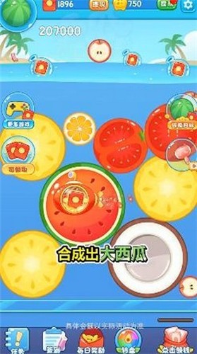 西瓜爱消除这款游戏操作非常简单,玩家只需要将不同的水果摆放在合适的位置就可以进行消除,每一个西瓜的消除都可以为你带来一定的分数,获得更多的分数才是你取胜的关键。现在玩这个全新的西瓜爱消除红包版游戏,可以领取丰厚的红包奖励,加入这款游戏挑战更多的关卡获取更多的红包。在进行合成的时候,心里要有规划,比如同时出现两个绿色的时候,玩家要选择合成哪一个绿色,绿色合成之后是红色的西瓜仁,这时候要选择一个有利于下一步继续合成的那一个球.