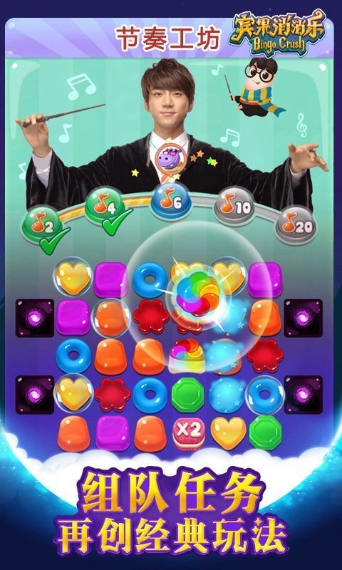 宾果消消乐游戏年度最Q弹的消除游戏现已登陆! 现在就和可爱的小女孩儿莉莉一起前往充满奇幻的糖果王国,对抗女巫大坏蛋、拯救可怜的糖果居民,开始最甜蜜的消除冒险吧!考古小队出发啦!闯关收集工具就能挖掘宝藏~快来打磨宝石,用绝版装扮扩充你的博物馆吧!