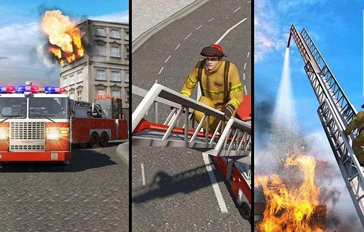1、扮演消防员的3d模拟器,并从危险的火灾救公民!