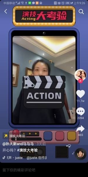 1、将自己的演技考验过程录制成视频分享到朋友圈,给别人带来更多的欢乐。