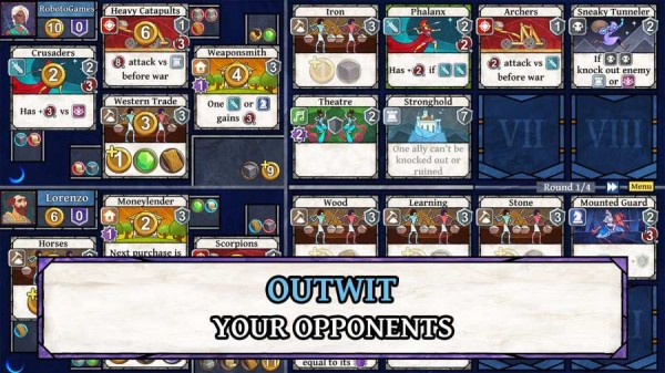 完美平衡你的城市的文化、军事、国防、经济智胜你的对手,赢得!特色玩法的12个独特人物。