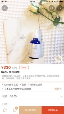 采用保税仓备货,100%真品,快捷的购物流程,媲美国内快递体验,完善的售后服务。