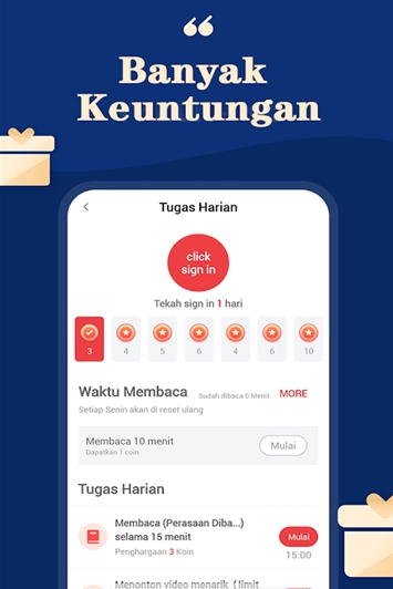 2.只要您每天阅读,就可以获得日常任务,额外的金币,执行任务,免费赠送金币!