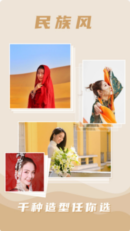 2,丰富造型,随时选择,用户可以选择软件中的数千种造型的模式来进行使用和操作,包括民族风、婚纱还有古风等等,多种风格都可以来自由变幻。