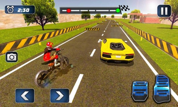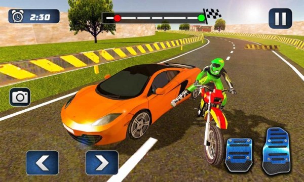 单车道双车道自由选择,发挥高超驾驶技能,去体验刺激的摩托驾驶。