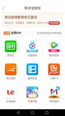 在帮寻宝app拥有观影特权,可以观看各大影视APP的VIP电影。