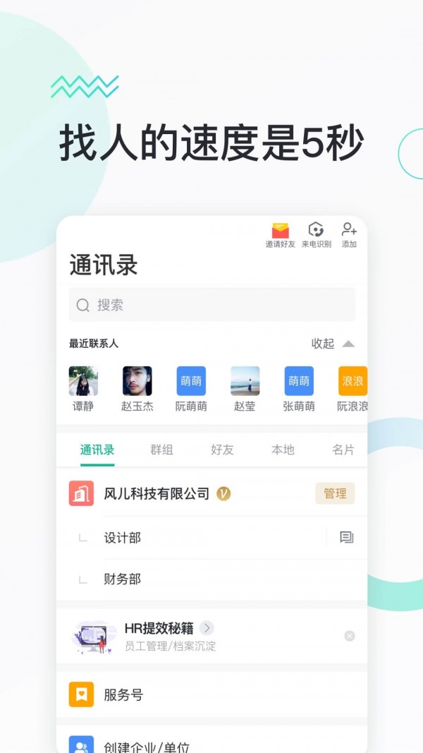 「企业通讯录」无需重复添加通讯录,5秒快速找人