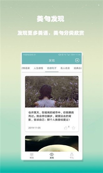 收集、发现、分享和记录唯美句子。一句歌词,一行诗句,一段对白, 总有一些文字能刻在你心底。