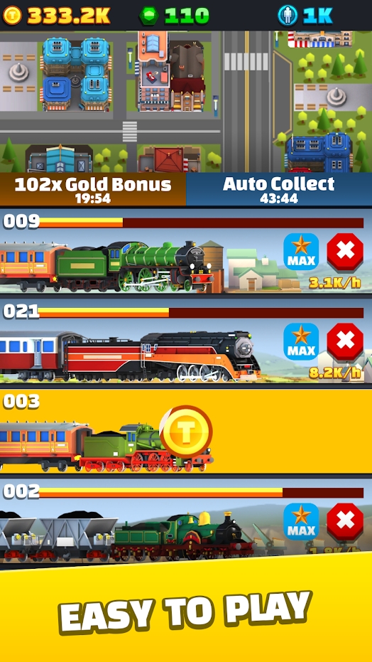 火车珍藏家游戏安卓版(Train Collector)是一款很受欢迎的轻松休闲的游戏,让你没有任何的压力,包管不会让你头痛!竖立你的火车珍藏,典型的放置点击游戏,各种各样的火车包罗万象,蒸汽、柴油、电动火车这些都能取得,只需求轻松的点击一下,便可开辟你的火车城市!