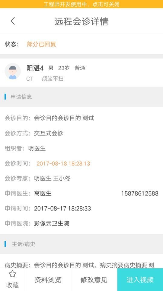 * 远程会诊支持非交互式或交互式(音视频)会诊,包括点名专家会诊