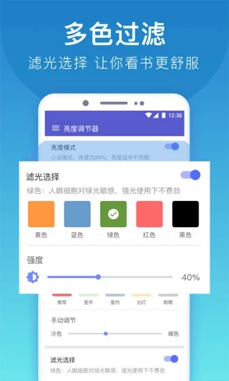 滤光调节:不同情境下,过滤不同光线。读书更轻松,护眼更专业,手机必备护眼宝