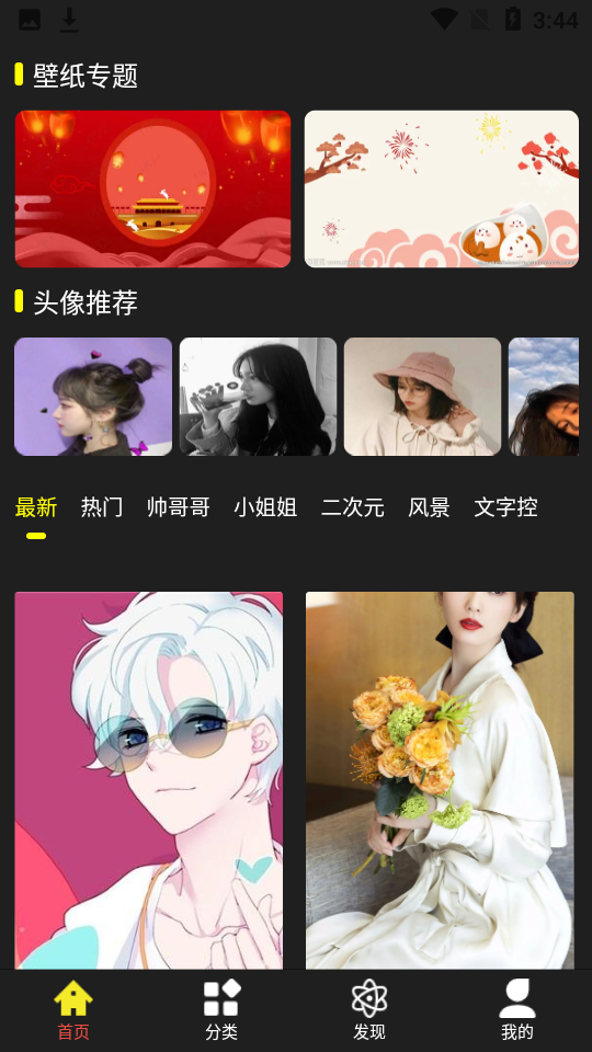 3、静态壁纸:包含美食、文字、节目、汽车、头像、美人等多种壁纸。