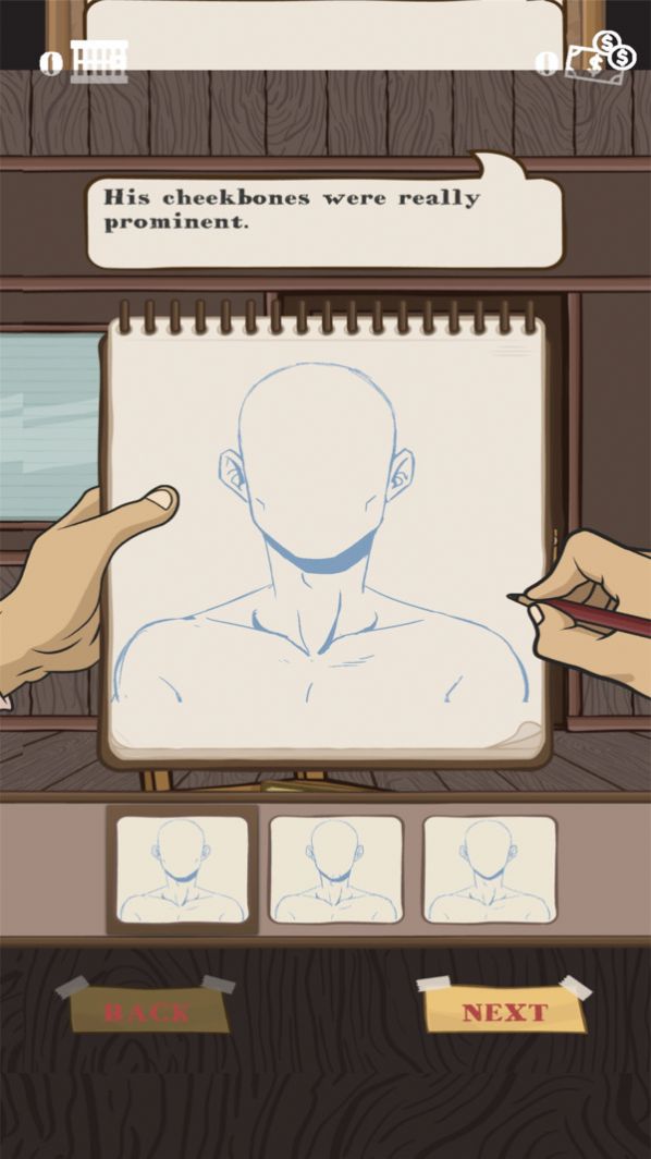 2、玩家需要根据内部人员的描述来写罪犯的画像,并精确的画出罪犯的身体、衣着、外貌等细节,方便警察发现罪犯。