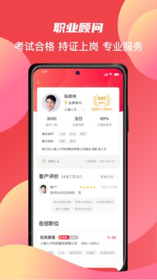 【求职体验好】顾问经过严格审核,专业、及时、有保障,更有面试辅导、职业规划为您全方位考虑。