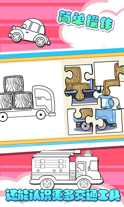 只要按住某一块拼图,拖动到正确位置的附近,则拼图会自动调整到正确位置,如果位置不正确则会摆动几下,只要将所有拼图都拖到正确的位置则游戏过关,过关后则获得一颗红心,让各种交通工具都动起来。让小朋友在益智游戏中,眼、手、脑一起动,从小培养小朋友的综合能力,锻炼敏捷的思维,活跃思路,开阔眼界。