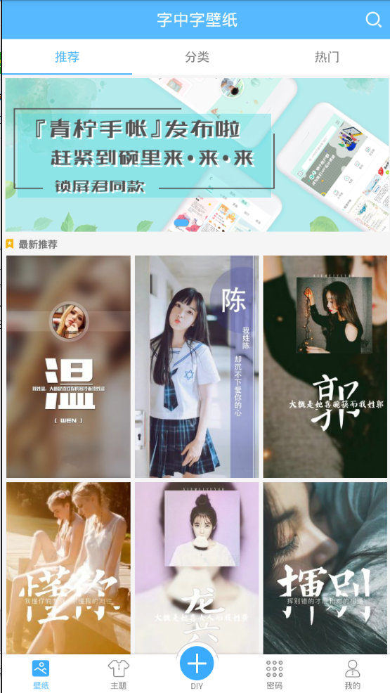 字中字壁纸app安卓版是一款个性十足的壁纸美化软件,汇聚了海量主题壁纸,支持自定义DIY各种壁纸,可以设计自己的壁纸来装饰自己的手机桌面,用户就可以选择更多好看的壁纸以外,将自己的姓氏或者你喜欢那个人的姓氏去配上里面的图片,提供了锁屏界面,现在除了你,谁也别想去动你的手机,现在还有更多的功能,有兴趣的朋友欢迎来点击下载!