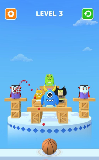 游戏设置了多个关卡,并提供丰富的道具,可玩性强。会有投球辅助线帮助你瞄准!