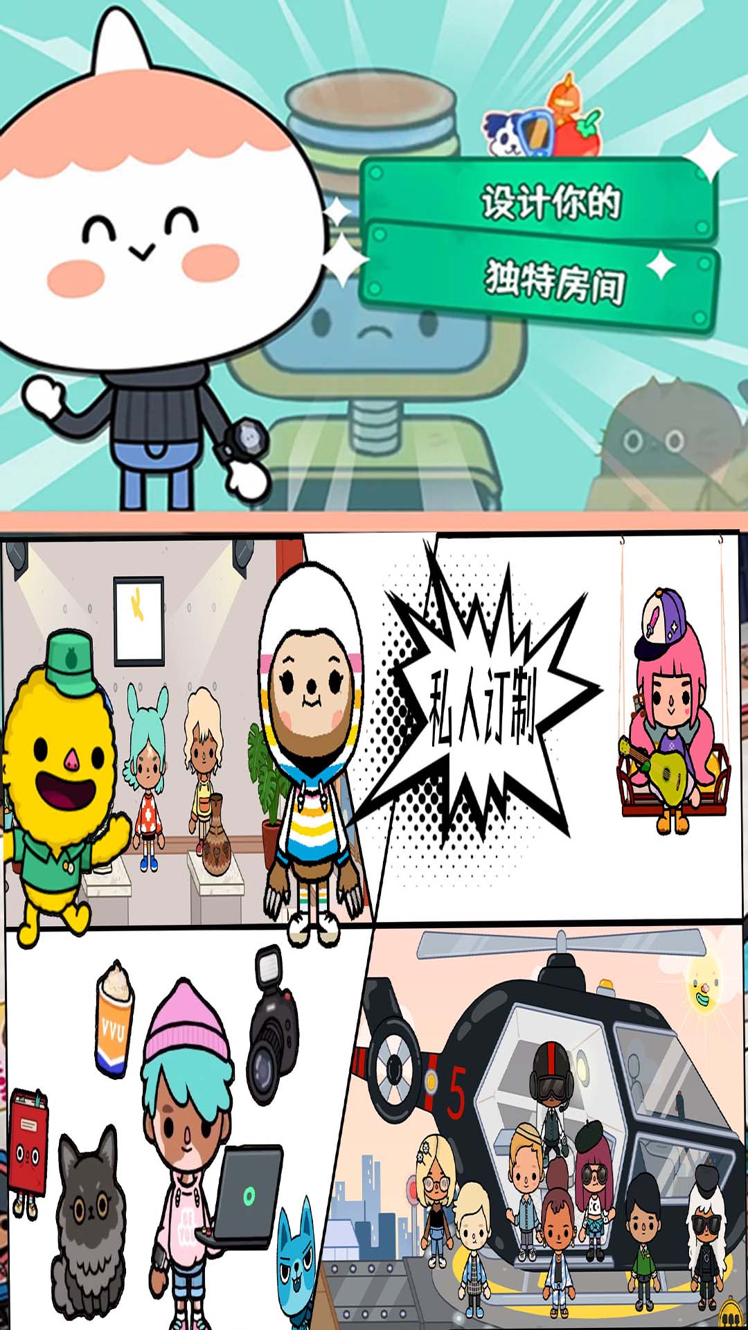 游戏背景设置非常温馨,这里有非常多的游戏人物,玩家可以不断的解锁自己喜欢的游戏角色,非常多的道具也是可以进行解锁并且使用,在经典的托卡世界,自由探索冒险,感受自由玩法乐趣,挑战全新的经营玩法吧。