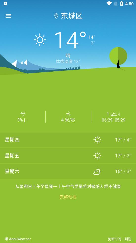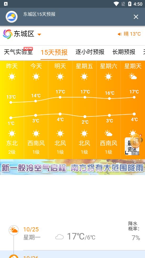 预报信息——24小时天气及温度预报;未来天气信息及趋势对比;支持2486个国内城市区县和676个国际城市。