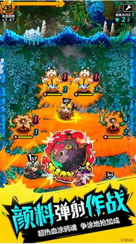 独创占地攻击加成系统,拖曳角色展开弹射攻击,用颜料盖满整个场地,抢得最高 100% 加成!还可用涂鸦召唤巨大圣兽,给予敌人致命打击!