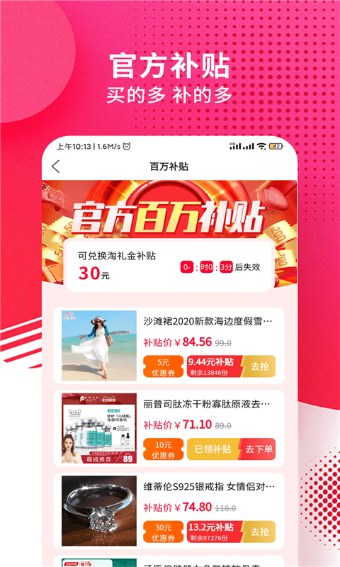 3、超多品类的商品,多到琳琅满目,每个对应的商品都有大量内部的优惠券提供,让你购物更省钱。