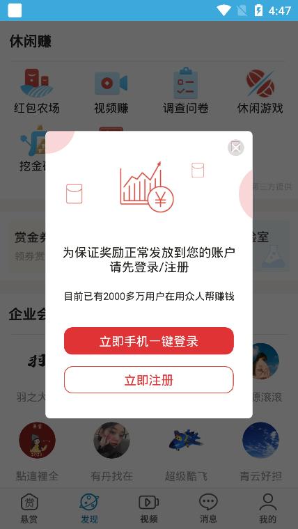 众人帮app是一款手机抢单赚钱软件兼职赚下零花钱;或者动动手指,让用户更准确地了解最完整的优惠信息,可以在众人帮2021上领取小任务完成,还等什么喜欢的小伙伴快来下载吧。