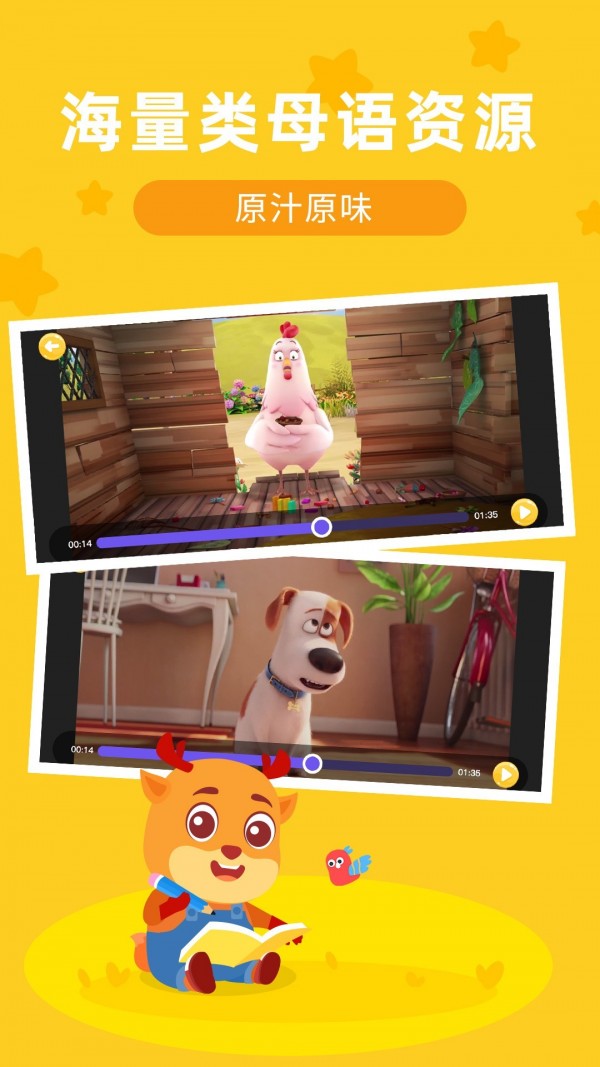 字母入门,词汇拓展,单词短句,视听素材,绘本读物,睡前故事,亲子情景对话一应俱全,多方位提升孩子听说能力。