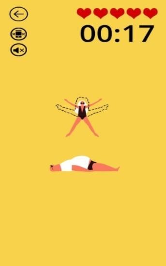 每个人物的动作与框中一致时,你就会闯关成功。如果不一致,没有出现在框中等等情况都会消耗一个体力值,消耗完毕闯关失败