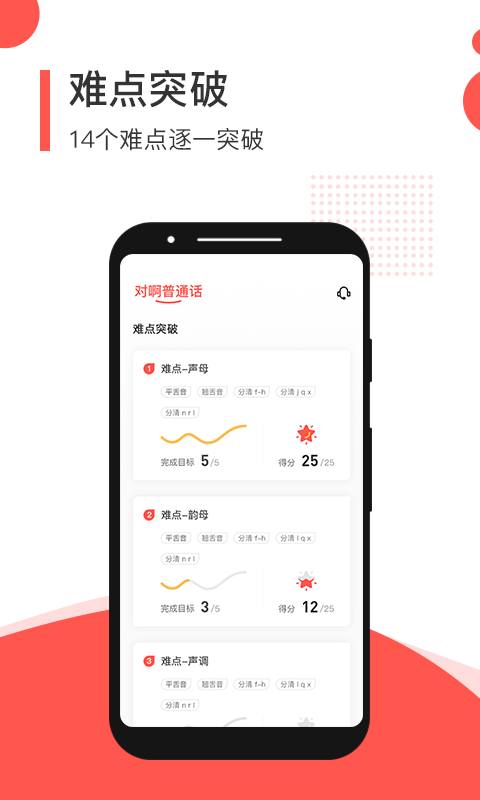 普通话学习测试app是一款关于普通话训练的软件,单音节、多音节各类普通话标准读音,帮你消除地方家乡味,采用全国普通话考试的发音训练,拥有丰富多样的普通话学习直播课程,专业老师专门指导学习,从拼音的发音到儿化音再到轻声与重读等各个方面全方位的为用户提供指导,让你两天之内就能掌握学习方法,除了能学习,还有多种发音练习模块,根据普通话考试的必考内容分板块练习,学习充满高效,快来下载体验吧。